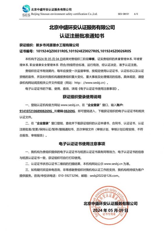 新鄉(xiāng)市鴻源潛水工程有限公司,有從事潛水行業(yè)二十多年的潛水團隊。公司具有獨立法人資格,注冊資金600萬元。   公司的潛水人員、潛水檢測人員、潛水焊接人員均經(jīng)過正規(guī)培訓(xùn),全部持有國內(nèi)權(quán)威機構(gòu)頒發(fā)的資質(zhì)證書。我公司水下焊接可靠,質(zhì)量優(yōu)良,技術(shù)過硬,可水下焊接鋼管樁,水下焊接犧牲陽極鋅塊,水下焊接連接梁,水下封堵焊接等等施工,報價合理,拒絕暴利,竭誠為您服務(wù)!水下電焊工程,水下電焊報價合理水廠電廠的水池、水道清淤、泵房清理、管道鋪放、攔污柵清污、更換閘門起落、導(dǎo)流洞、水庫壩體等維修施工水下補強加固:對水利電力系統(tǒng)水庫、大壩及沿海內(nèi)河港口、碼頭等水工建筑物水下鋼結(jié)構(gòu)或混凝土結(jié)構(gòu)缺陷進行。無論是對現(xiàn)在或?qū)恚紝⑹且豁椃浅S幸饬x的工作。水下焊接將成為水下作業(yè),水下安裝,水下維修等水下作業(yè)工程中不可或缺的重要工藝手段.公司堅持“先進的技術(shù)設(shè)備.優(yōu)質(zhì)的服務(wù)質(zhì)量.服務(wù)效率.熱情的服務(wù)態(tài)度,為生產(chǎn)經(jīng)營理念,以拒絕暴利合理收費為原則立足全國市場。我們將以優(yōu)質(zhì)的產(chǎn)品與售后服務(wù)來打造用戶良好體驗。愿同新老客戶竭誠合作、互惠互利、共創(chuàng)輝煌!水下電焊工程,水下電焊報價合理,鋼圍堰清淤公司鴻源-水下電焊工程,水下電焊報價合理,鋼圍堰清淤公司,水下電焊工程。      新鄉(xiāng)市鴻源潛水工程有限公司我公司成功打造鴻源優(yōu)質(zhì)服務(wù)。公司的潛水人員、潛水檢測人員、潛水焊接人員均經(jīng)過正規(guī)培訓(xùn),全部持有國內(nèi)權(quán)威機構(gòu)頒發(fā)的資質(zhì)證書。經(jīng)過多年經(jīng)營,公司具備公司具有獨立法人資格。